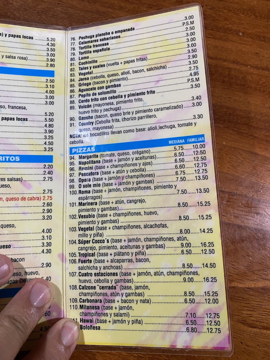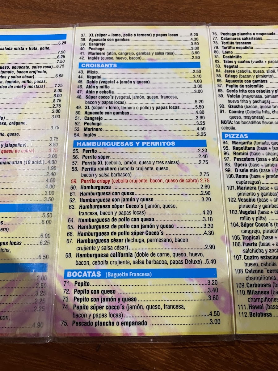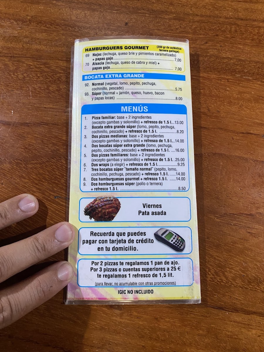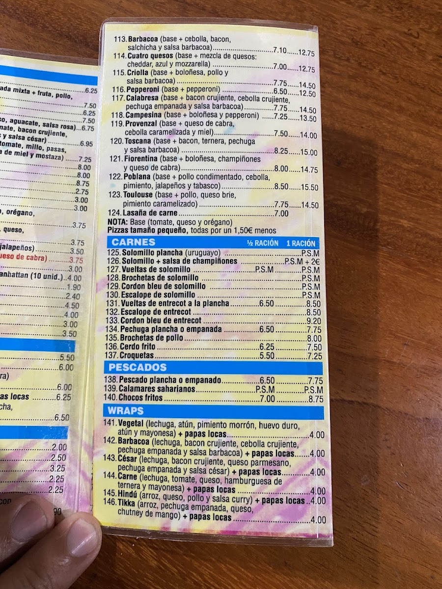 The food selection includes items like specialty sandwiches with sides, rice wraps featuring chicken and unique sauces, as well as classic pizza varieties with ham, cheese, and mushrooms. These options provide choices for those seeking quick meals or light bites.